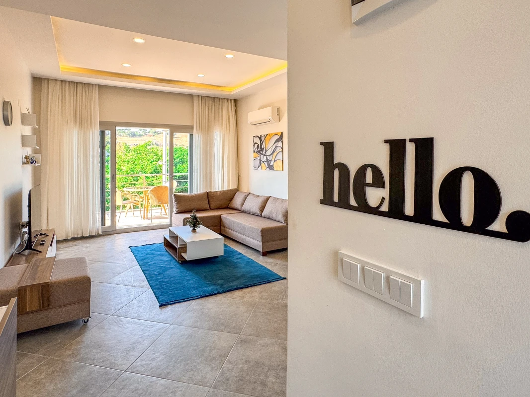 Soğucak · Soğucak’ta; orman ve vadi manzaralı özel balkonu, 3,40 m yüksek tavanlı ferah yaşam alanı ve havuzlara yakın konumuyla konforlu 1 yatak odalı apart.